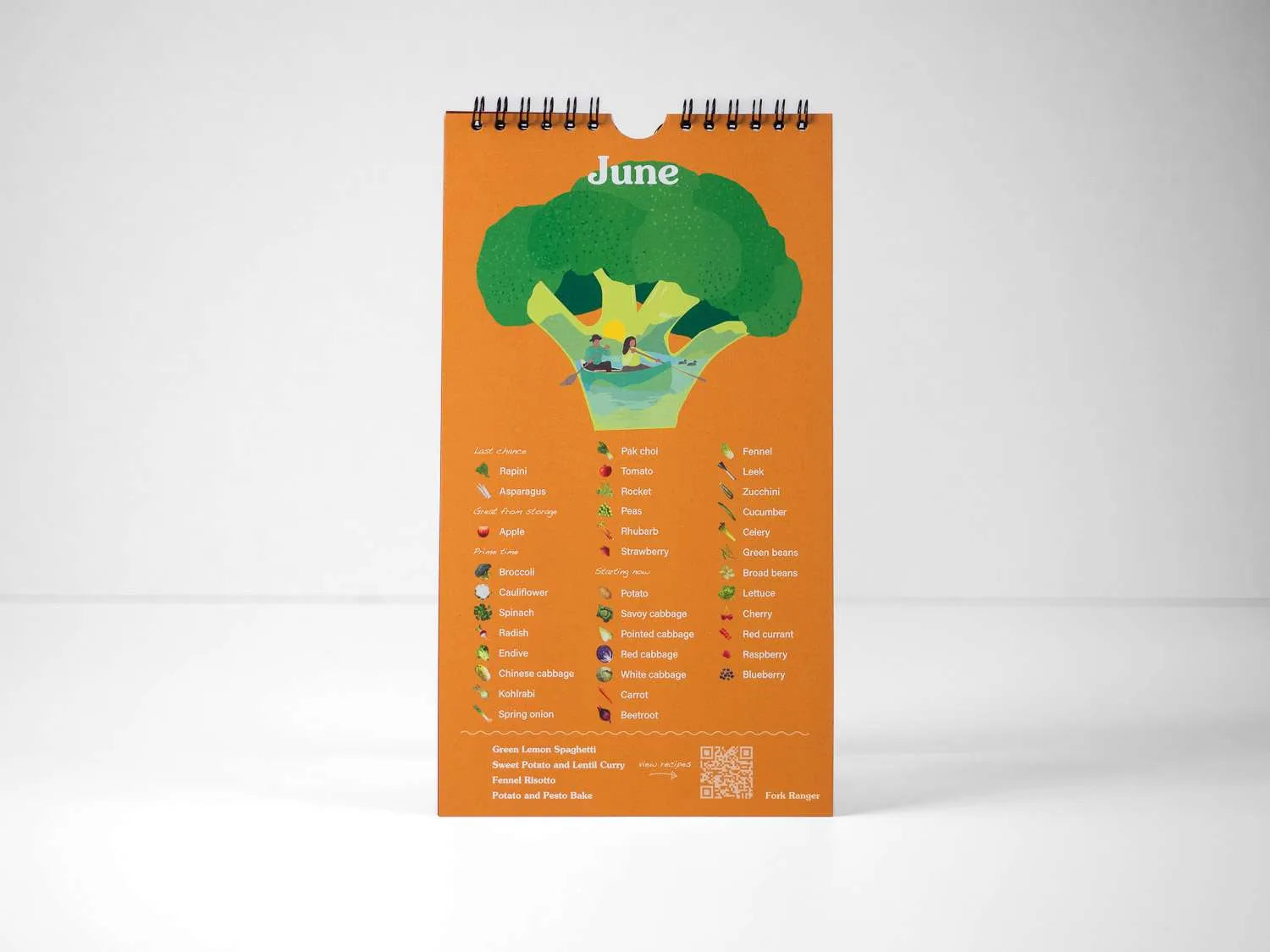 Ein wunderschöner Kalender mit praktischem Design. Jeder Monat zeigt an, welche Zutaten Saison haben für Nordwesteuropa. Erfahre mehr über saisonale Obst und Gemüse und setze es mit 48 Alltagsrezepten um.