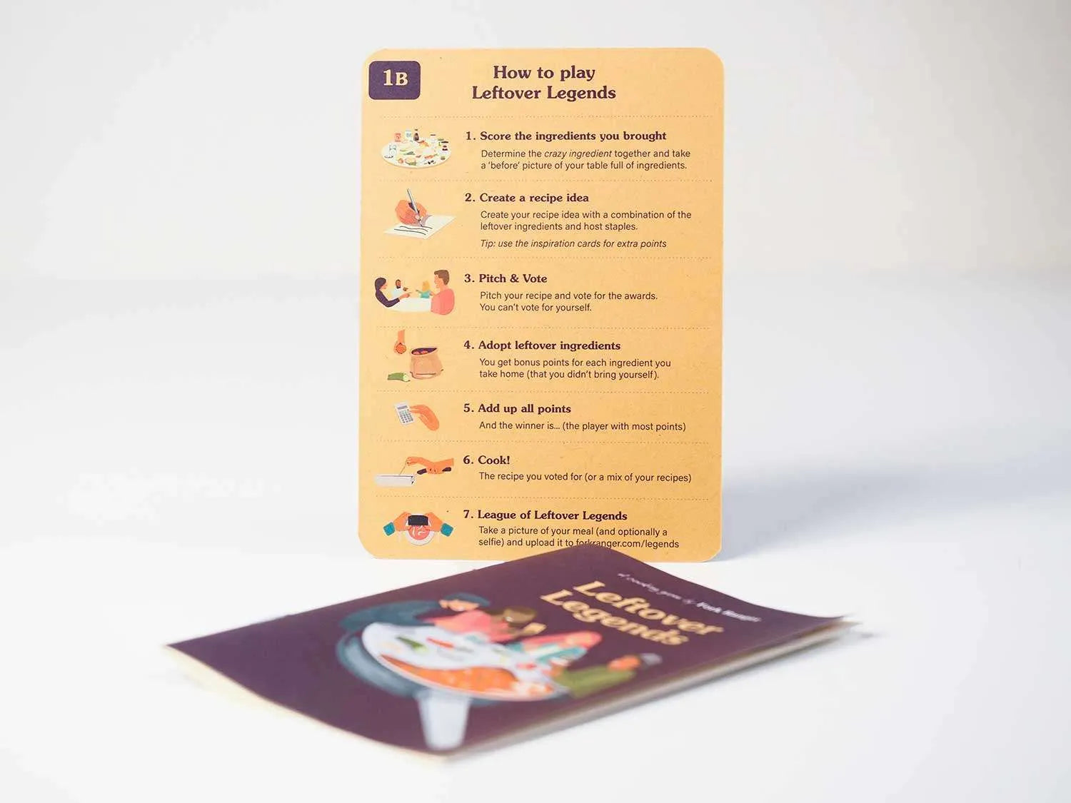 Een dinerpartyspel dat je helpt voedselverspilling te verminderen door creatief te koken met overgebleven ingrediënten. Gebruik de tips & tricks voor jezelf of speel (en kook!) met je vrienden!